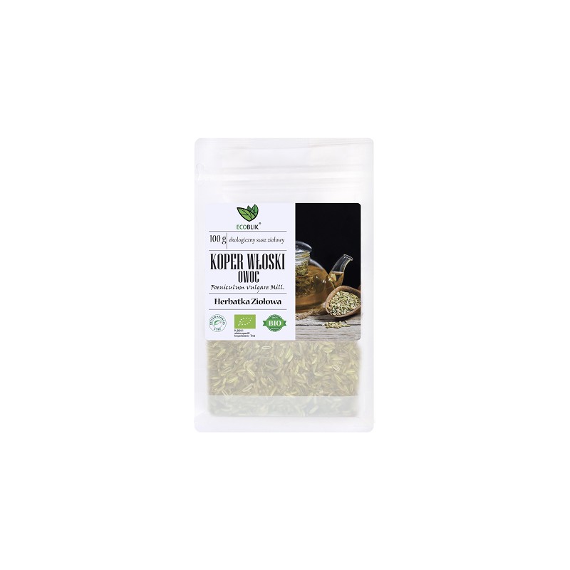 Składniki: Ekologiczny owoc kopru włoskiego (Foeniculum vulgare Mill.) 100%.