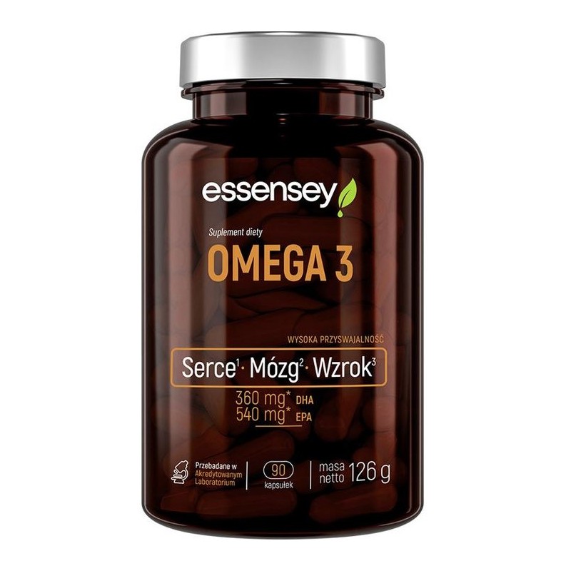 Essensey Omega 3 - wysokiej klasy preparat bazujący na kwasach tłuszczowych z grupy omega 3. Formuła preparatu jest wolna od przypadkowych dodatków, znajdziesz w niej jedynie tran (olej rybi) o wysokim stopniu koncentracji oraz witaminę E. Zawarte w składzie kwasy EPA i DHA wpływają wzmacniająco na organizm i to na wielu płaszczyznach jednocześnie. Odpowiednia ich podaż wpływa pozytywnie na wzrok, ciśnienie krwi oraz funkcjonowanie układów: nerwowego i krwionośnego.
