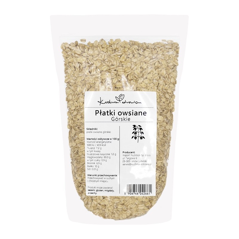 ✅Kuchnia Zdrowia Płatki owsiane górskie powstają z delikatnie zgniatanego ziarna, dlatego gotują się błyskawicznie i świetnie chłoną aromaty dodatków. Są źródłem węglowodanów złożonych, białka roślinnego oraz cennych mikroelementów. Codzienny kubek owsianki to prosty sposób na pożywne śniadanie lub regeneracyjny posiłek po treningu.