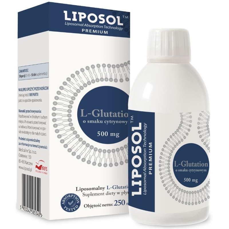 Liposol™ Liposomalny L-Glutation 500 mg to nowoczesny suplement diety w płynie, opracowany w oparciu o zaawansowaną technologię liposomalną. Każda porcja dostarcza zredukowany L-glutation (GSH) – formę naturalnie występującą w organizmie, pozyskaną w kontrolowanym procesie fermentacji.