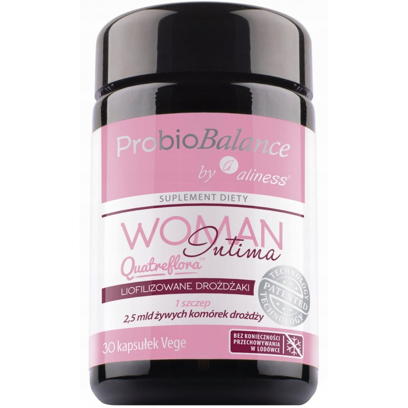 ProbioBalance by Aliness® WOMAN Intima zawiera szczep drożdży Saccharomyces Cervisiae CNCM I-3856, w opatentowanej postaci Quatreflora dedykowany kobietom chcącym zadbać o równowagę mikroflory pochwy. „Dobre” drożdże Saccharomyces Cervisiae kolonizują miejsca intymne w sposób pośredni (poprzez układ pokarmowy) i wypierają z nich pasożytnicze grzyby z gatunku Candida albicans.