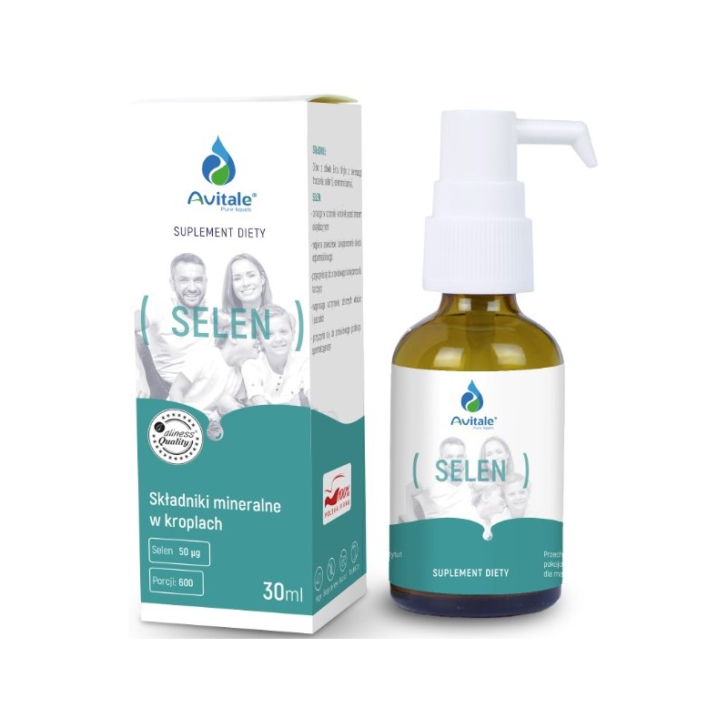 Avitale Selen to wysokiej jakości suplement diety w kroplach, zawierający selen w formie selenometioniny – najlepiej przyswajalnej i bioaktywnej postaci tego pierwiastka. Dzięki wygodnej formule w kroplach produkt umożliwia precyzyjne dawkowanie i szybkie wchłanianie.