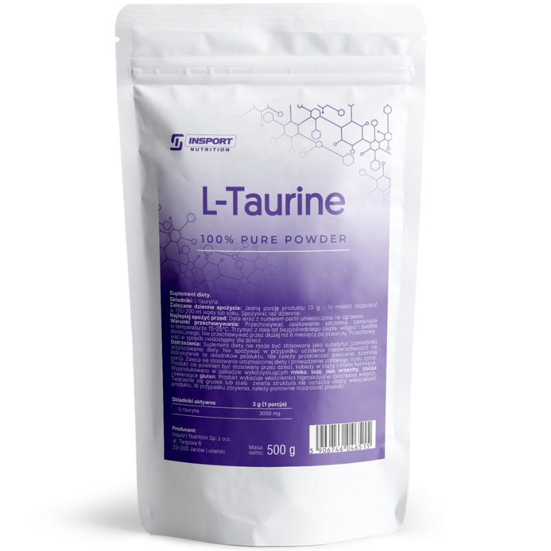Insport Nutrition L-Tauryna to suplement diety zawierający czystą L-taurynę w formie proszku. Jest to związek organiczny naturalnie obecny w organizmie człowieka, a także w wielu produktach pochodzenia zwierzęcego. Tauryna od lat cieszy się popularnością wśród osób aktywnych fizycznie, które chcą w prosty sposób uzupełniać swoją codzienną dietę. Dzięki dużemu opakowaniu 500 g suplement wystarcza na długi okres stosowania.