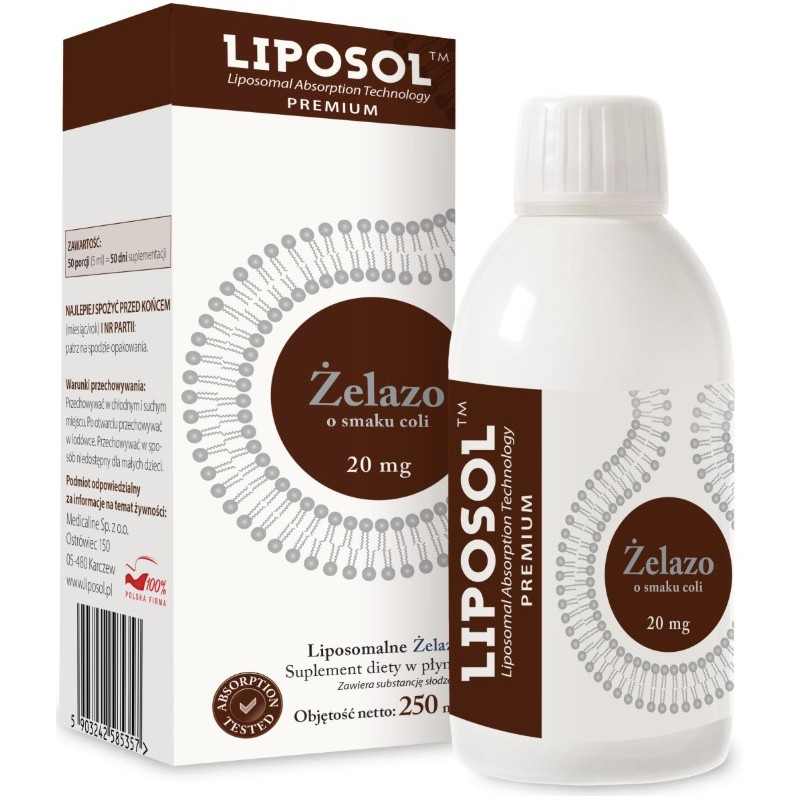 Liposol™ Liposomalne Żelazo 20 mg to suplement diety w płynie opracowany w oparciu o nowoczesną technologię liposomalną, która wspiera wysoką biodostępność i skuteczne wchłanianie składników aktywnych.